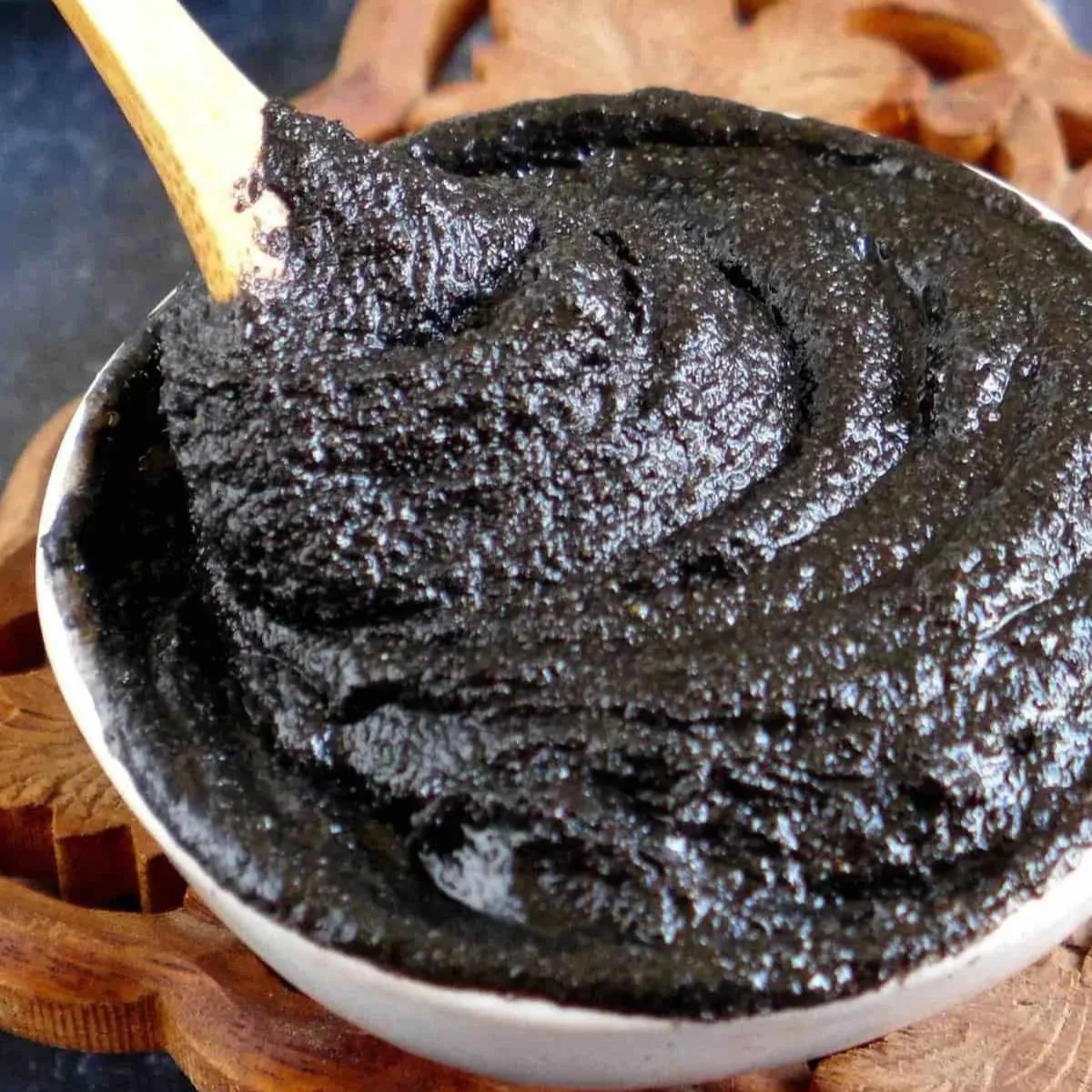 It’s made of unhulled black sesame seeds, a sugary ingredient, and optional fat. Firstly, the seeds are toasted to bring out their best aroma, then ground to a glossy, thick paste before being combined with other ingredients.