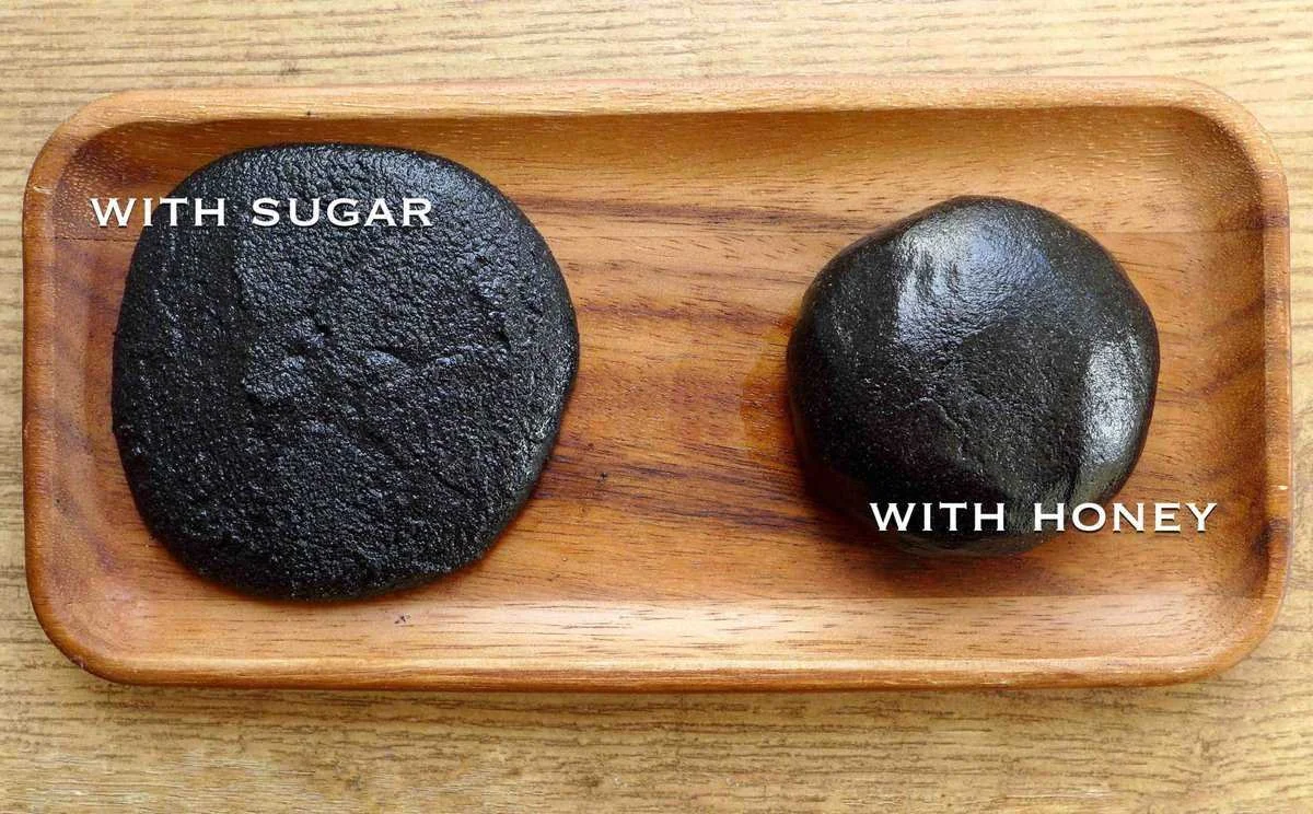 As I mentioned earlier, different sweeteners change the paste texture differently. The two portions of paste shown in the image below have different firmness.