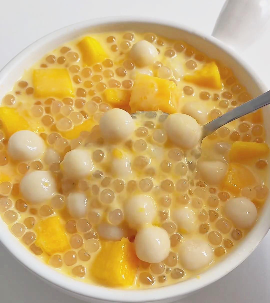 Since the weather is hot and humid, I love to transform traditional tang yuan into a refreshing and delightful dessert—Mango Smoothie with Small Sticky Rice Balls, which is quite similar to the popular Mango Sago. The combination of chewy rice balls, juicy sweet mango, and rich creamy coconut milk creates a perfectly balanced treat that is both satisfying and ideal for cooling down on warm days.